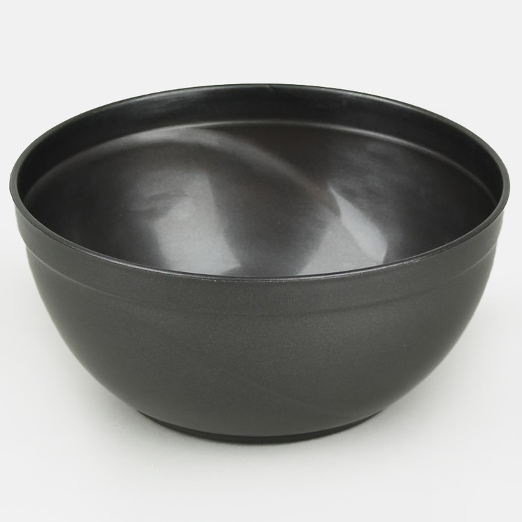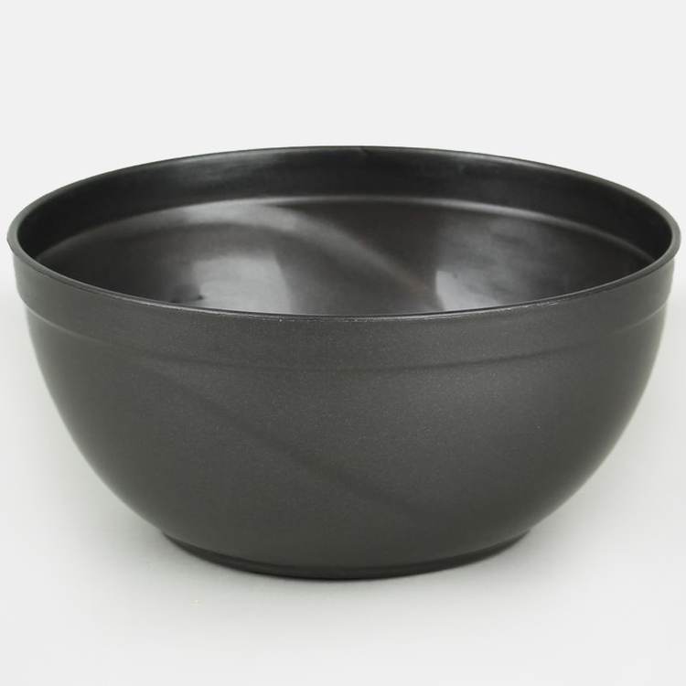 A small, plastic flowerpot in the shape of a bowl. Available in graphite or gold colours.