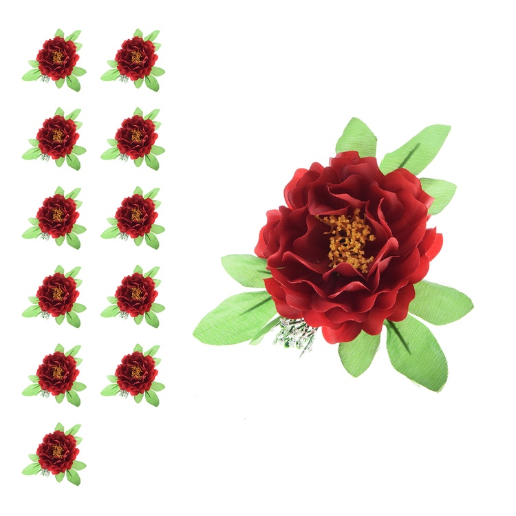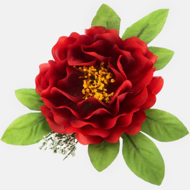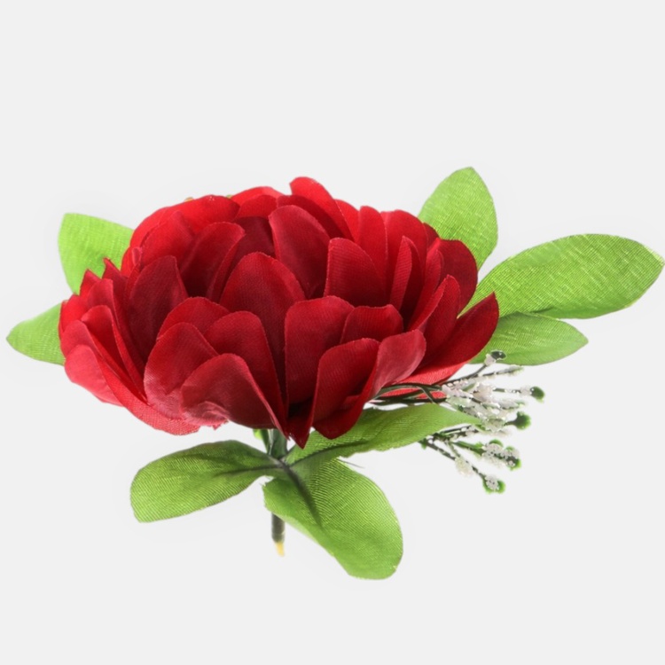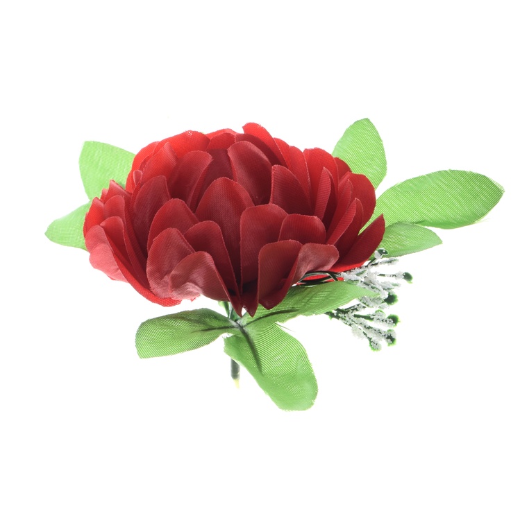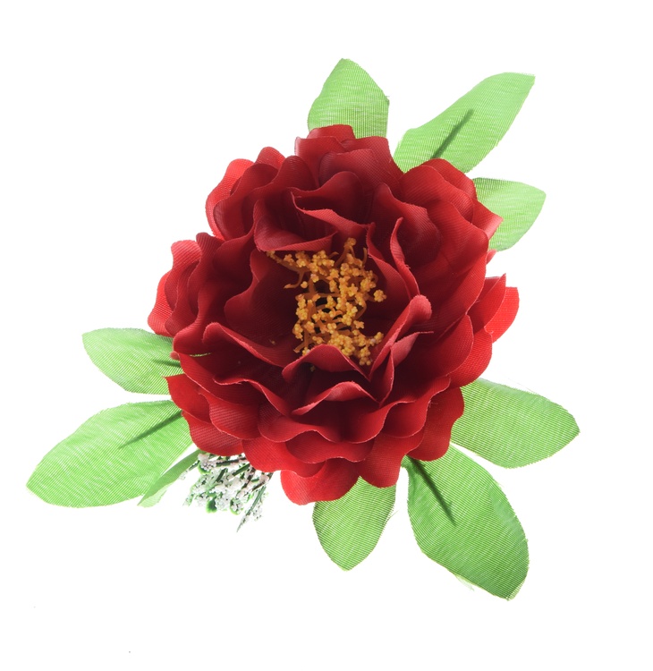Peonia z listkami i gipsówką- główka 9cm W052