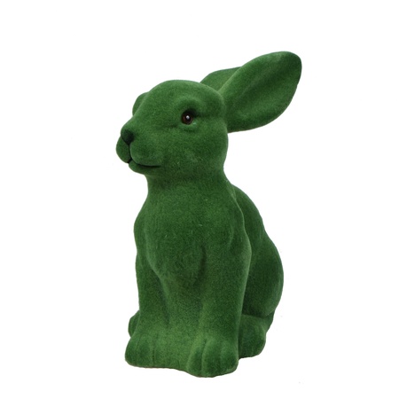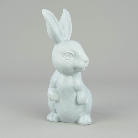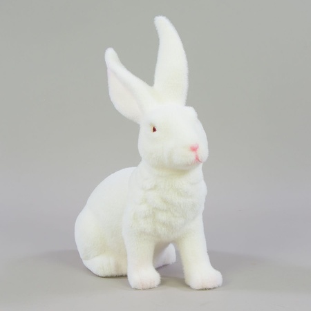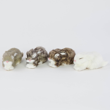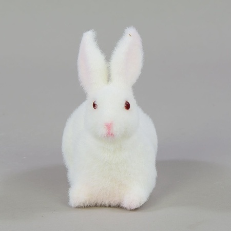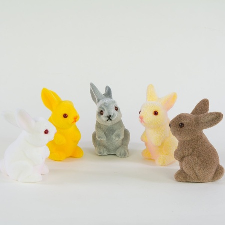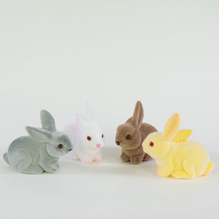 Easter rabbit and bunny figurines of various sizes – from tiny rabbits with fur to large, flocked hares. Both sitting and standing variants available, featuring natural colours.