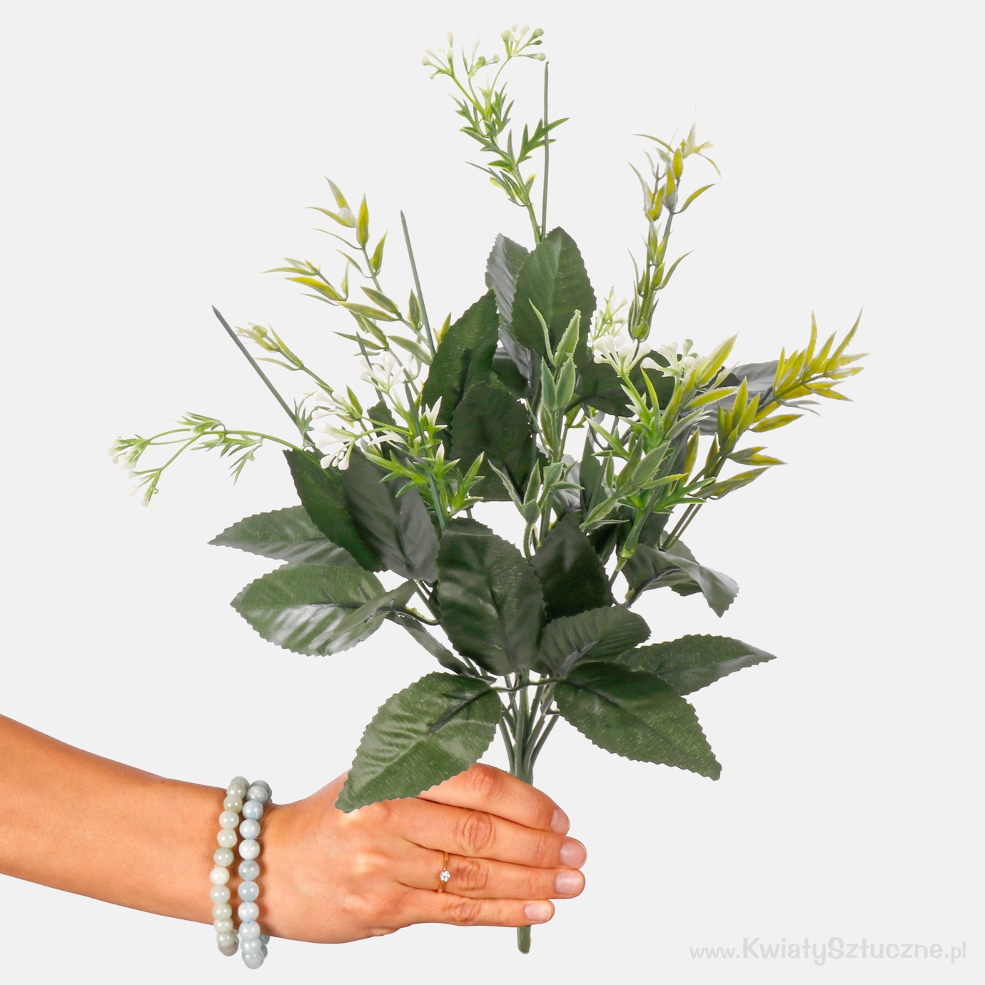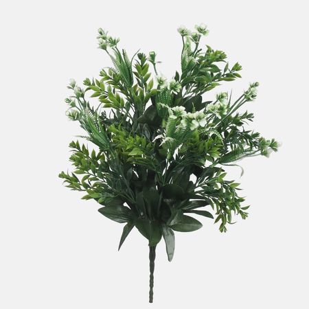 Artificial bouquet bases – universal and suitable for every flower head type, as well as ones dedicated to particular species (e.g. rose bouquet base). The bases feature different numbers of stems and leaves of various sizes. The frames may be decorated using artificial flower heads according to your preferences.